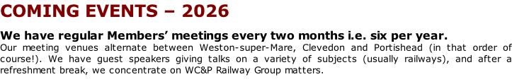 Meetings programme 2026: Meetings start at 7.30 p.m. |